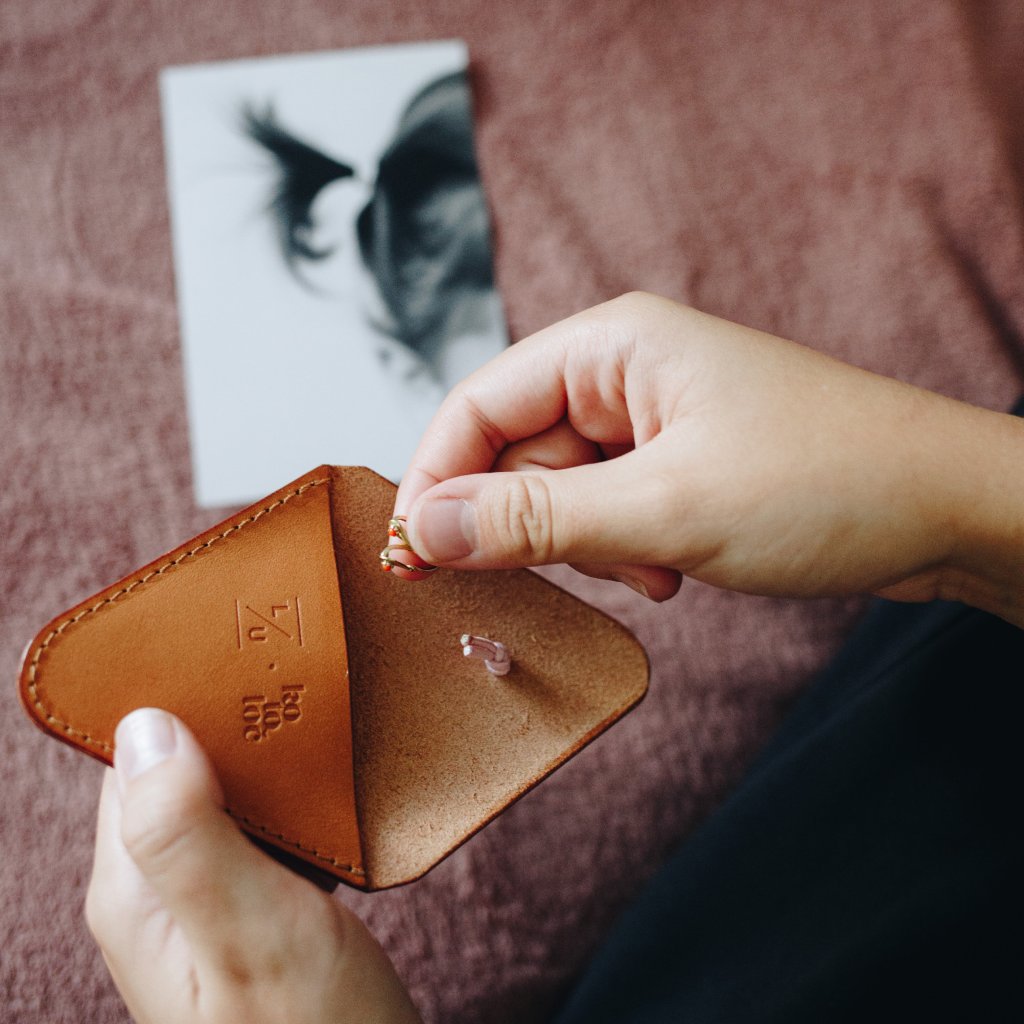 Ručně šité kožené pouzdro na první zoubky, vytvořené ve spolupráci s Luckou z Leather Utilities. Jednoduchý trojúhelníkový tvar přesně padne do dětské dlaně a uvnitř najde své místo první i všechny další vypadlé zoubky. Dítě je může schovat pod polštář pro zoubkovou vílu a později zůstanou jako milá vzpomínka na dětství. Zavírání na pružnou gumičku je snadné pro malé ruce a spolehlivé, aby každý poklad zůstal uvnitř.